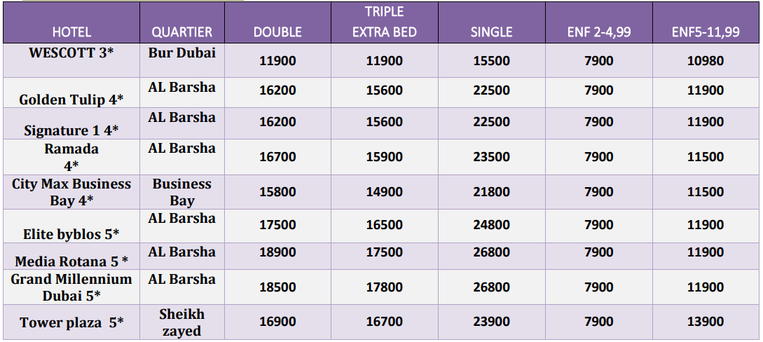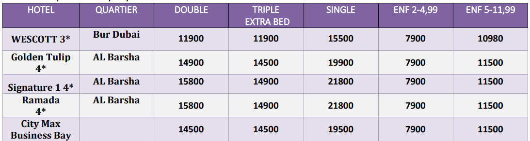 -3* Hotels 10 AED per room per night (around 3 USD)