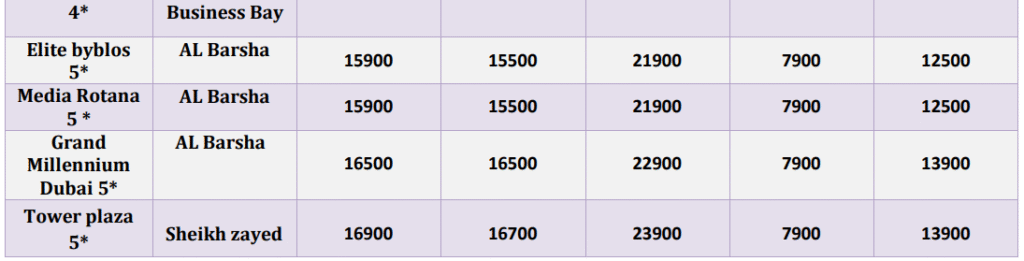 -4* Hotels 15 AED per room per night (around 4.5 USD)